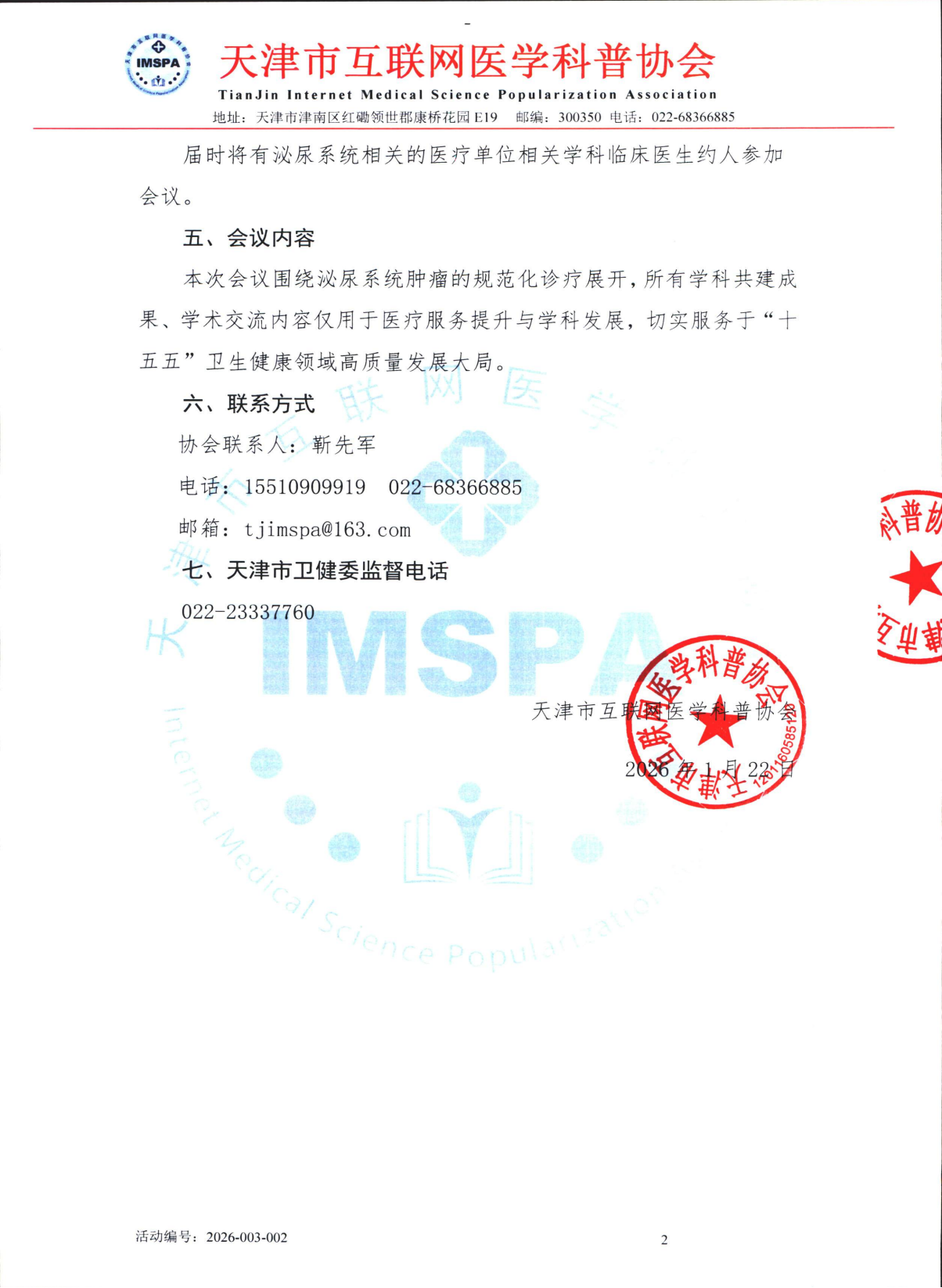 关于举办2026年“健康中国行,医疗卫生学科共建项目”之泌尿系统肿瘤规范诊疗学术会议的合作函