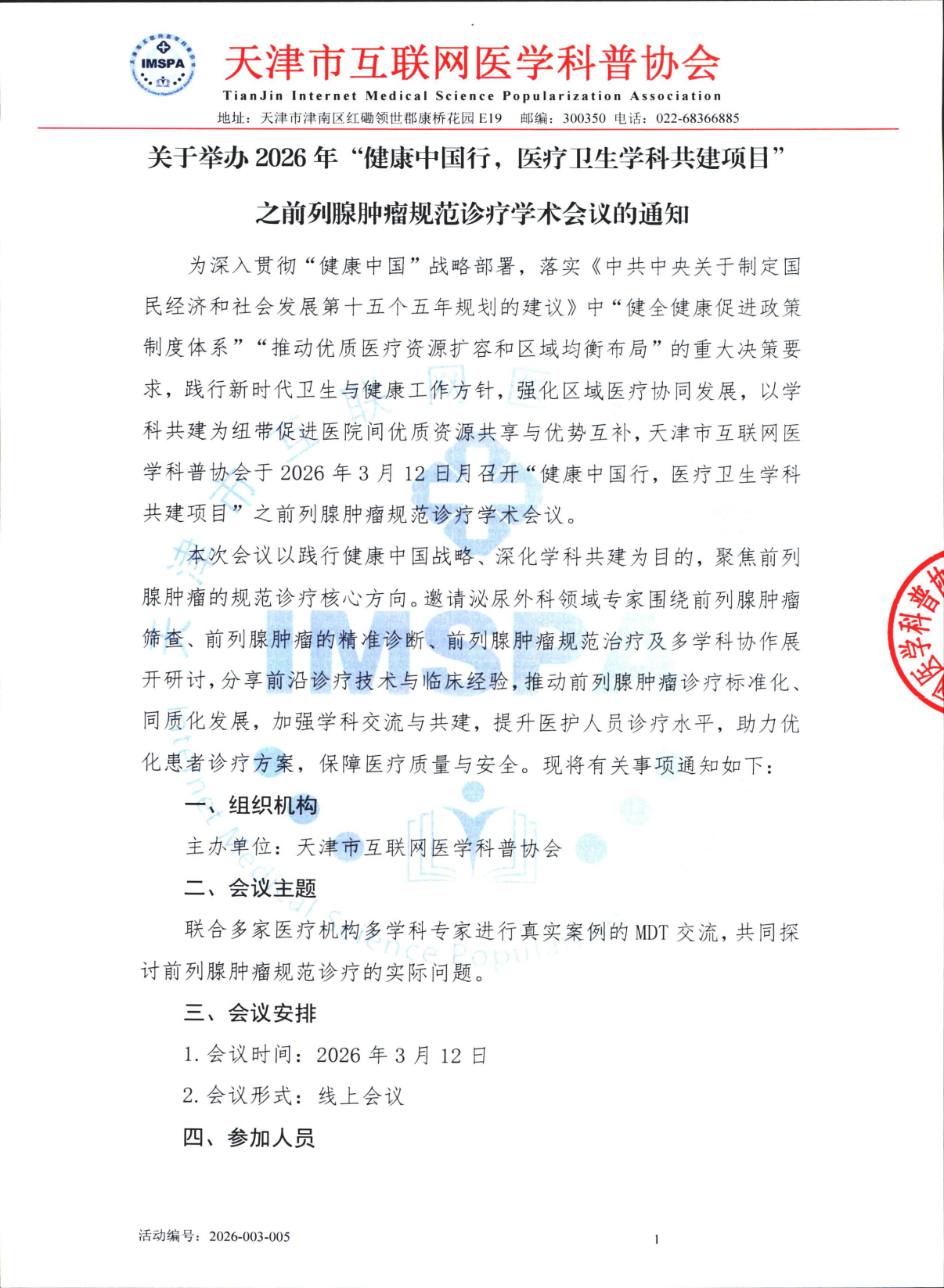 2026-003-005关于举办2026年“健康中国行,医疗卫生学科共建项目”之前列腺肿瘤规范诊疗学术会议通知
