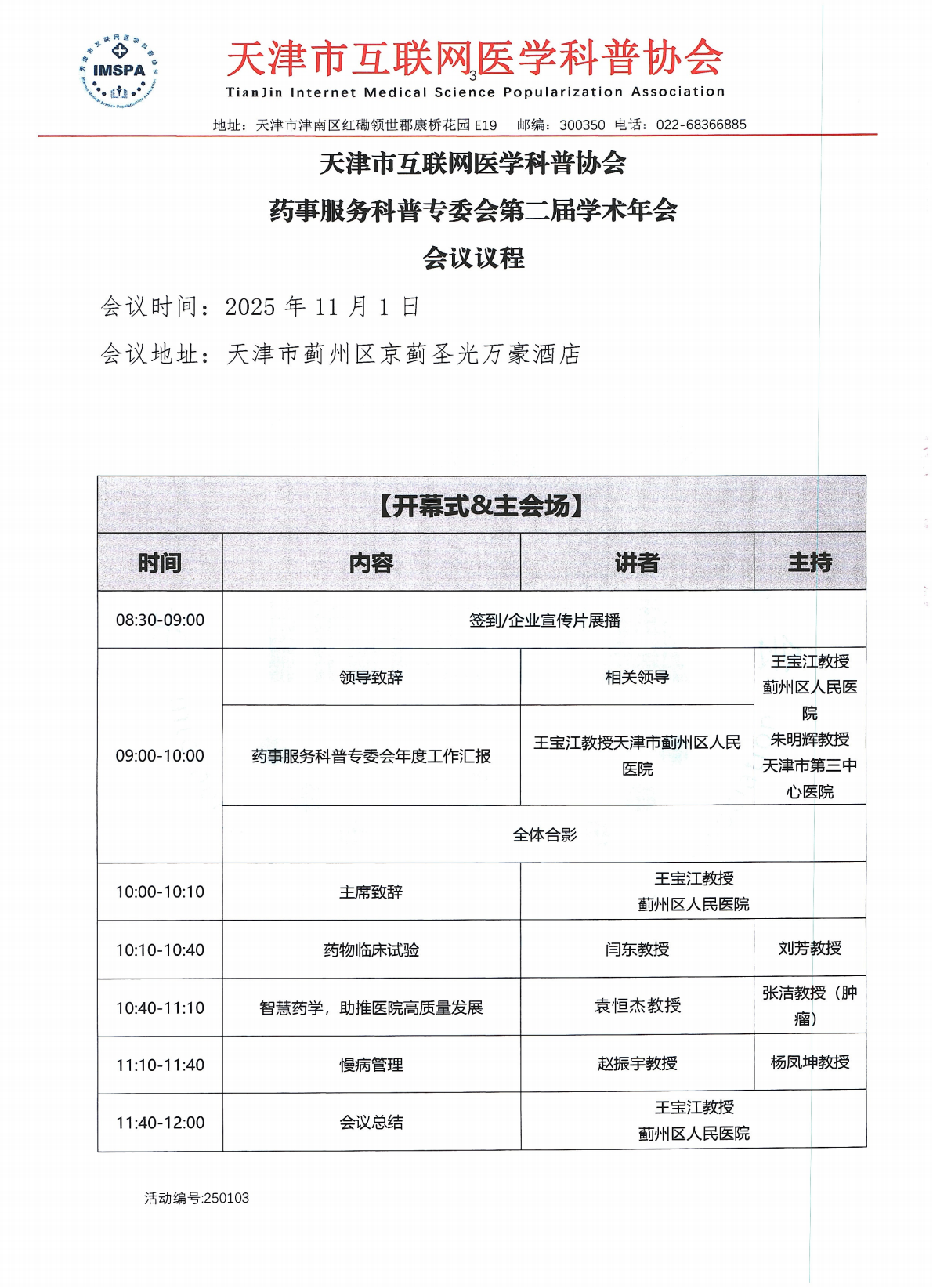 关于召开天津市互联网医学科普协会药事服务科普专委会第二届学术年会 会议通知