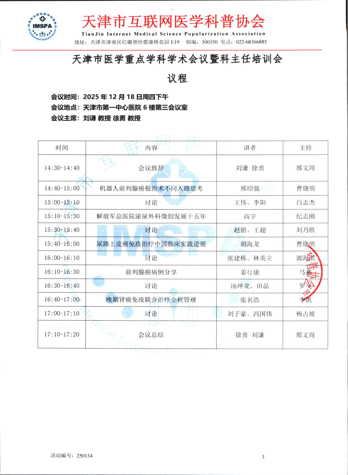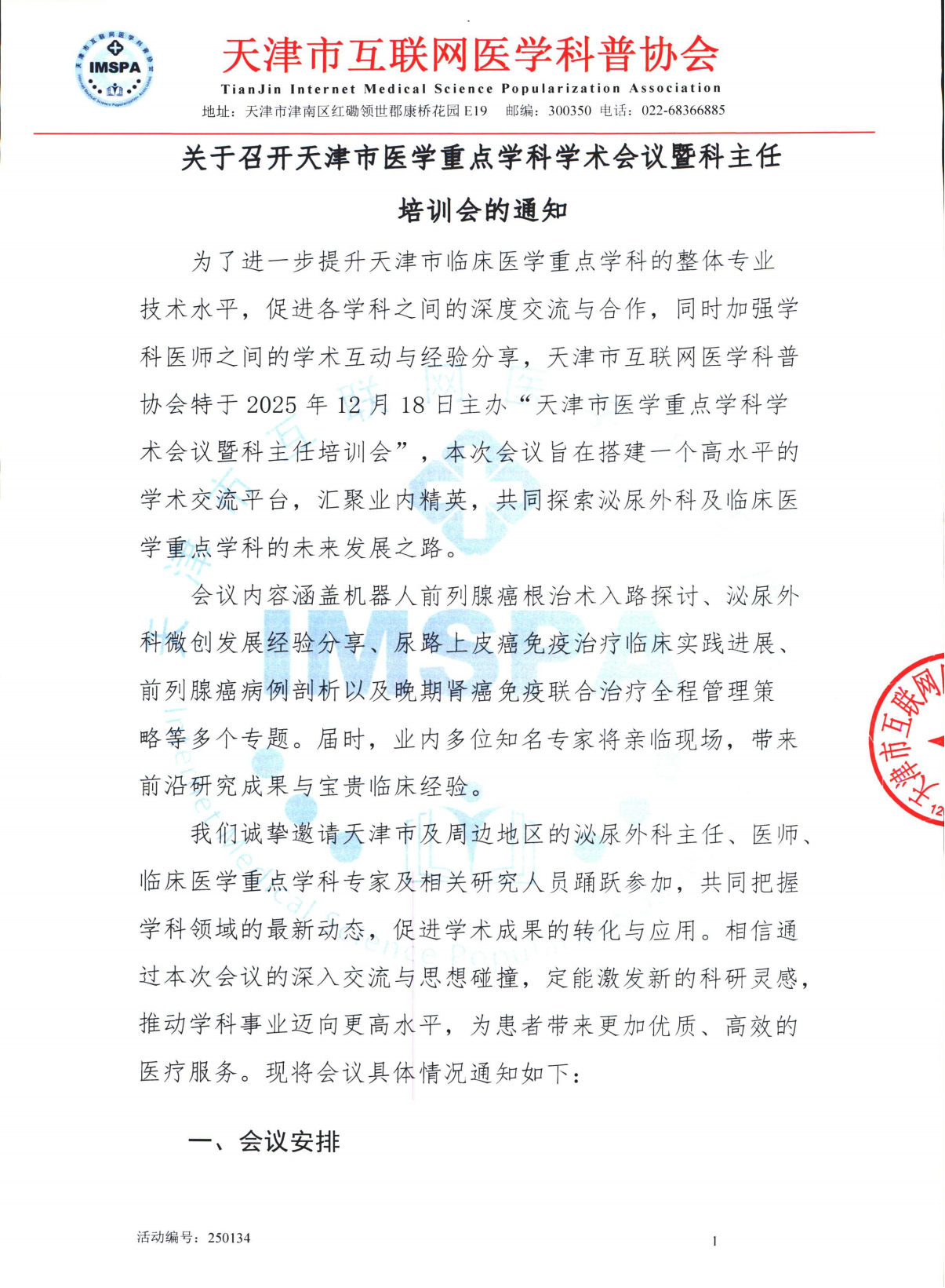 2025年天津市医学重点学科学术会议暨科主任培训会会议通知