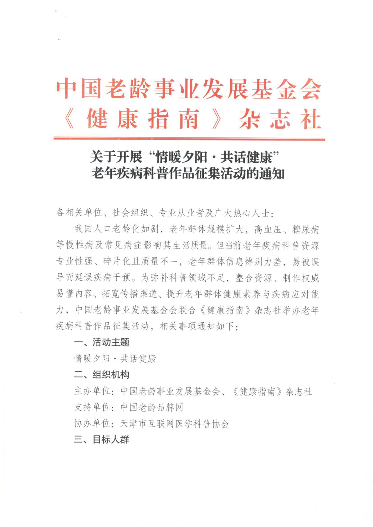 关于开展“情暖夕阳·共话健康”老年疾病科普作品征集活动的通知