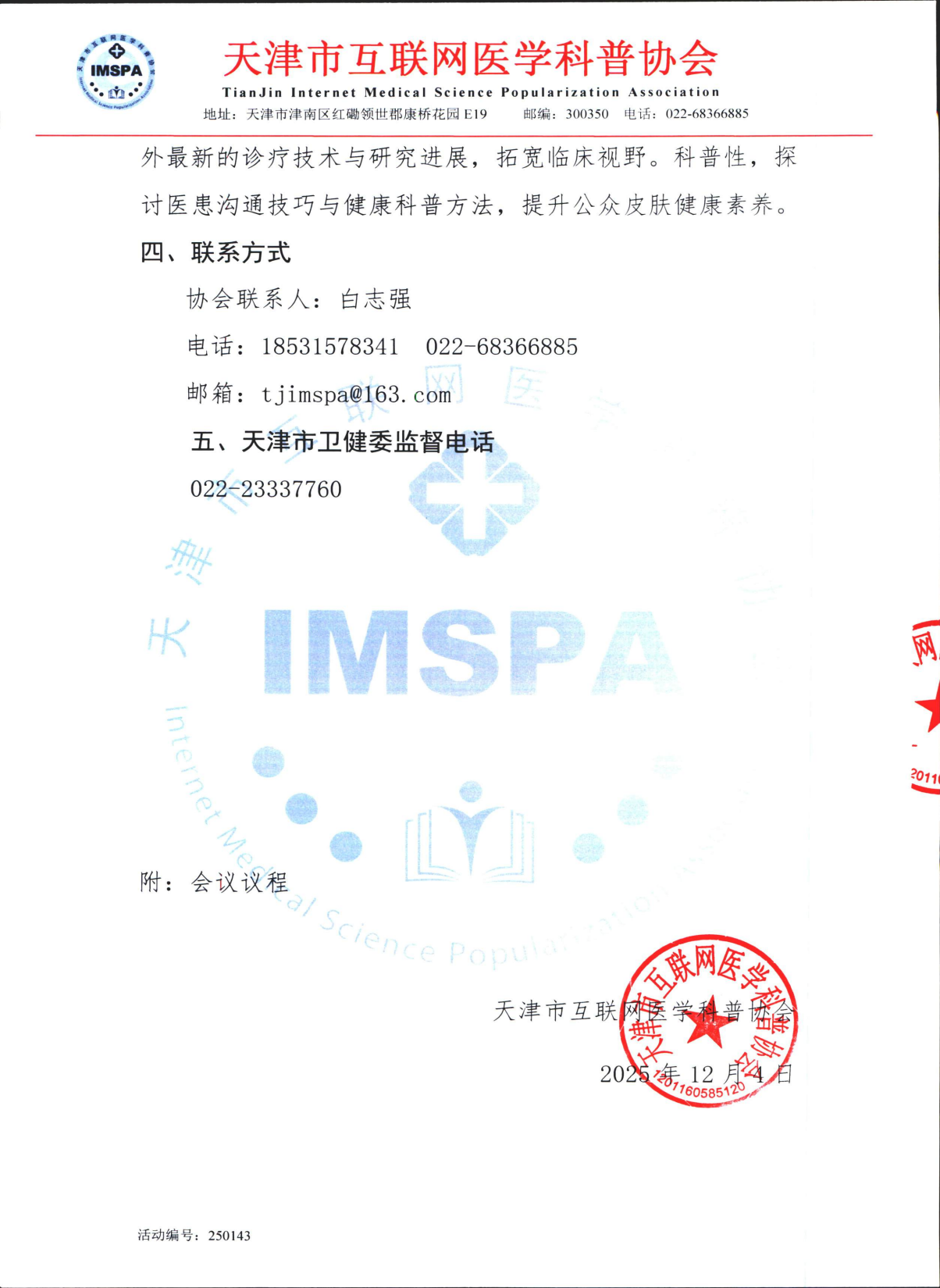 关于召开健康中国在行动,用药安全及诊疗进展科普交流项目之皮肤炎症性疾病规范化诊疗学术会议的合作函