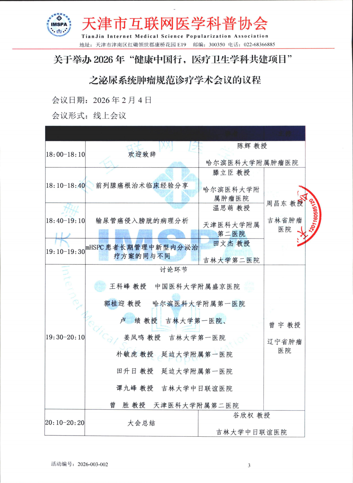 关于举办2026年“健康中国行,医疗卫生学科共建项目”之泌尿系统肿瘤规范诊疗学术会议的通知