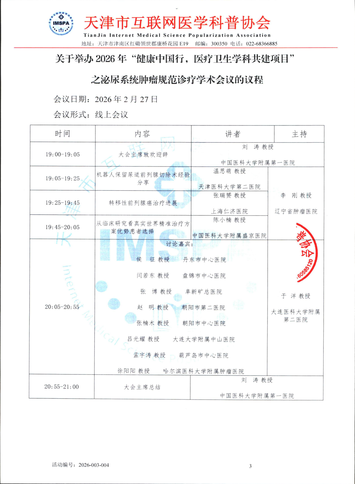 关于举办2026年“健康中国行,医疗卫生学科共建项目”之泌尿系统肿瘤规范诊疗学术会议的通知