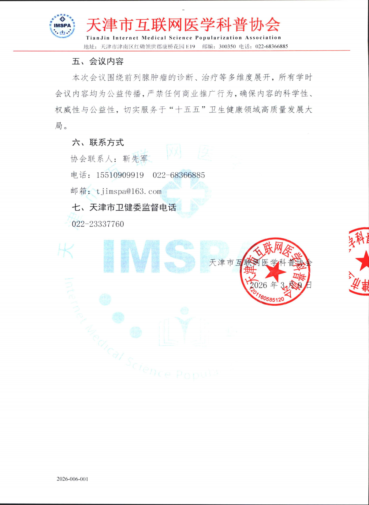 2026-006-001关于举办2026年“健康中国‘治’为基,规范治疗科普项目”之前列腺肿瘤规范诊疗学术交流会议合作函
