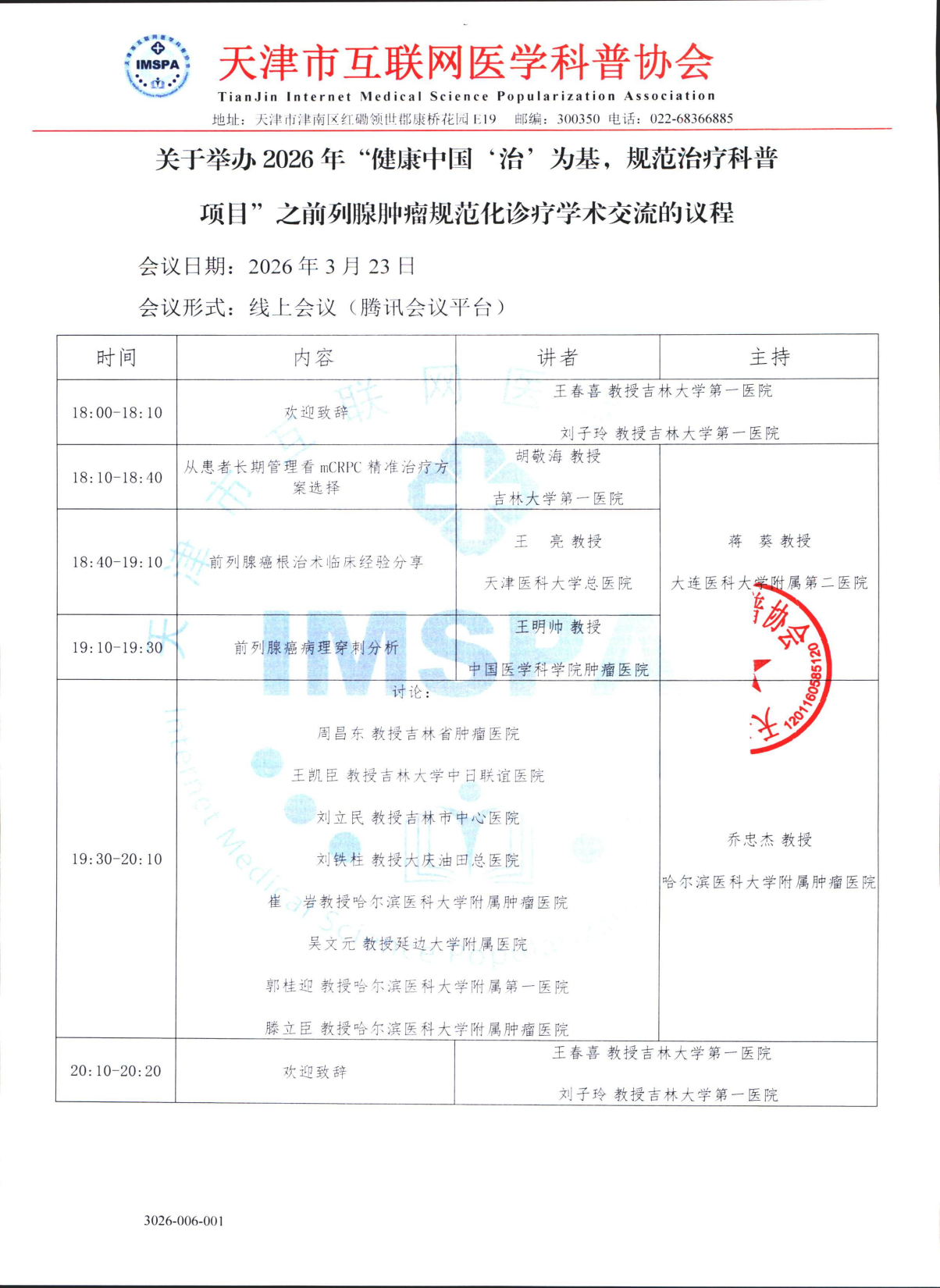 2026-006-001关于举办2026年“健康中国‘治’为基,规范治疗科普项目”之前列腺肿瘤规范诊疗学术交流会议会议通知